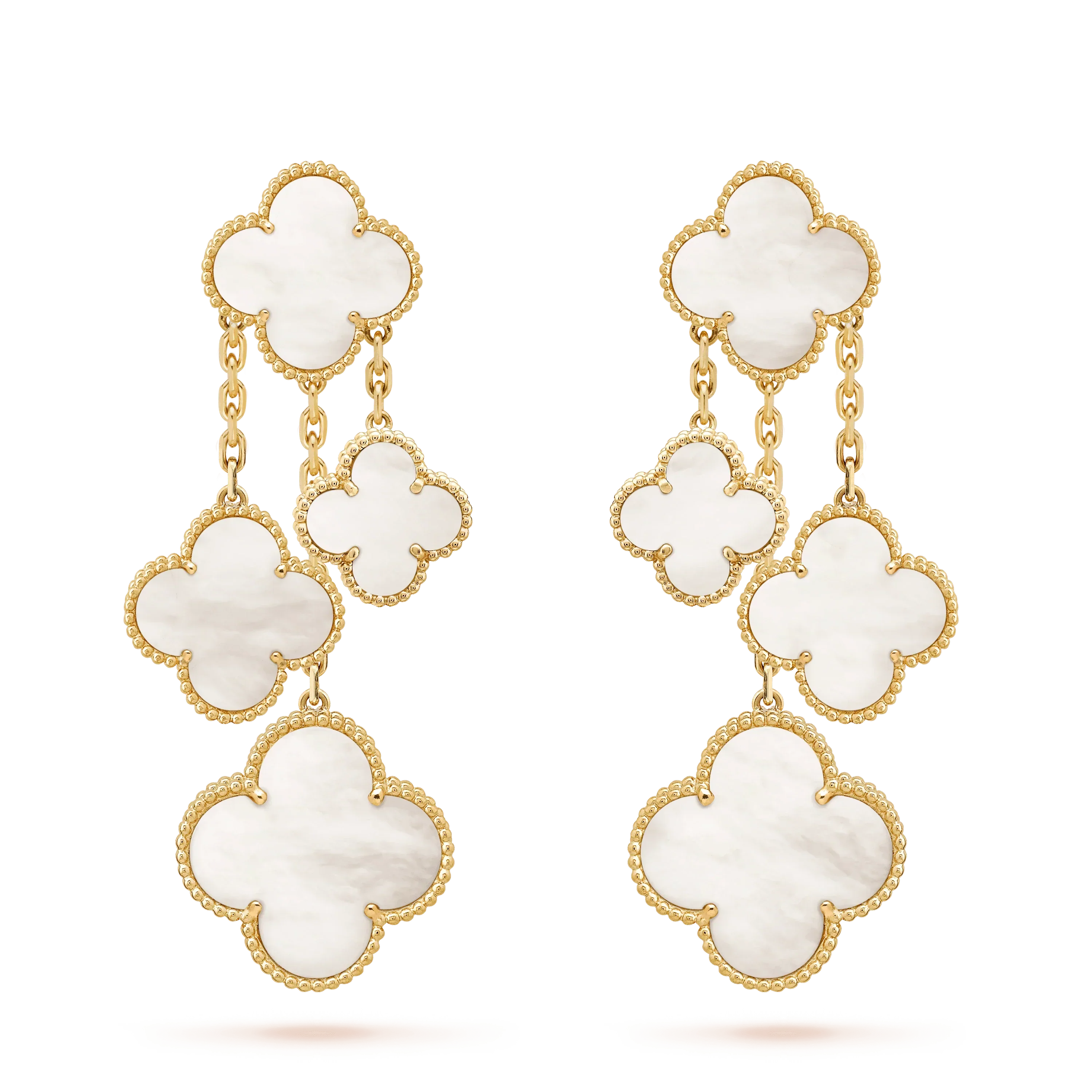 Clover Earrings White Mother Of Pearl Gold 2 Motifs Drop High Quality