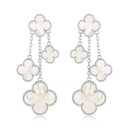Clover Earrings White Mother of Pearl 4 Motifs Silver Drop Design High Quality