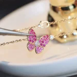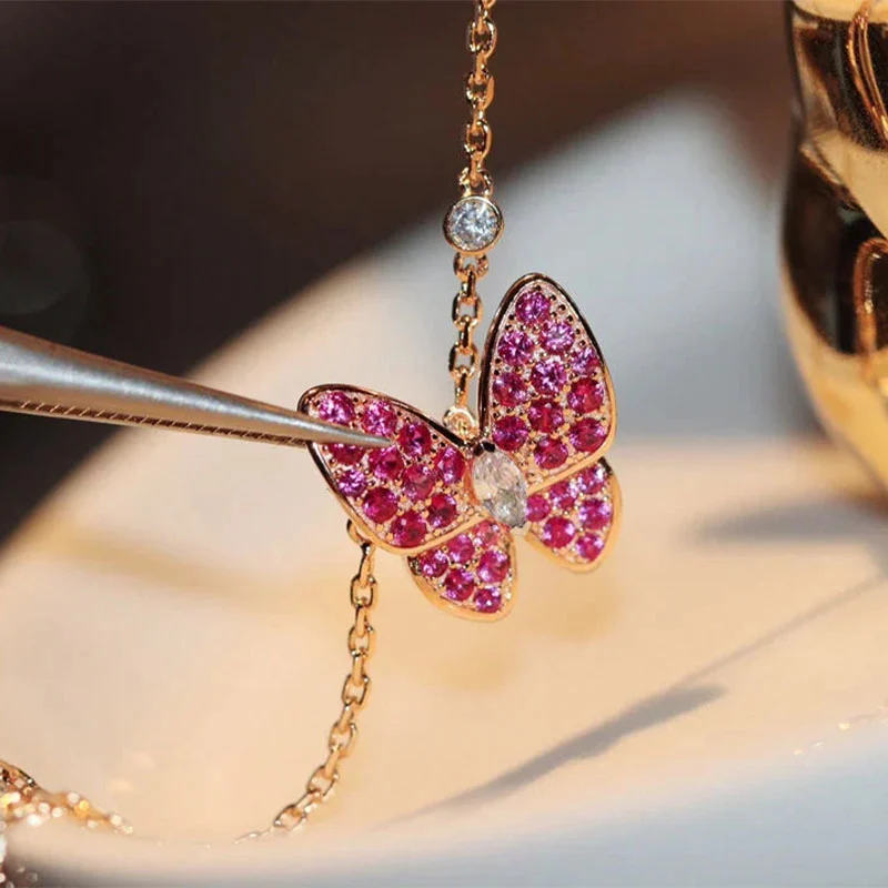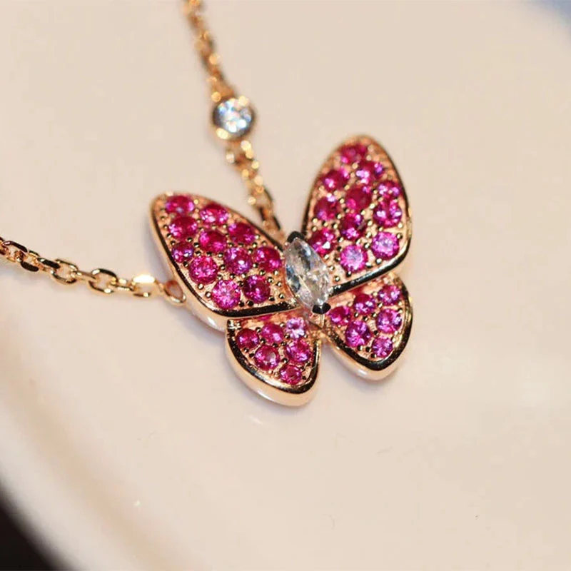 Butterfly Necklace Rose Gold Diamond Butterfly Pendant Sparkling Design High Quality