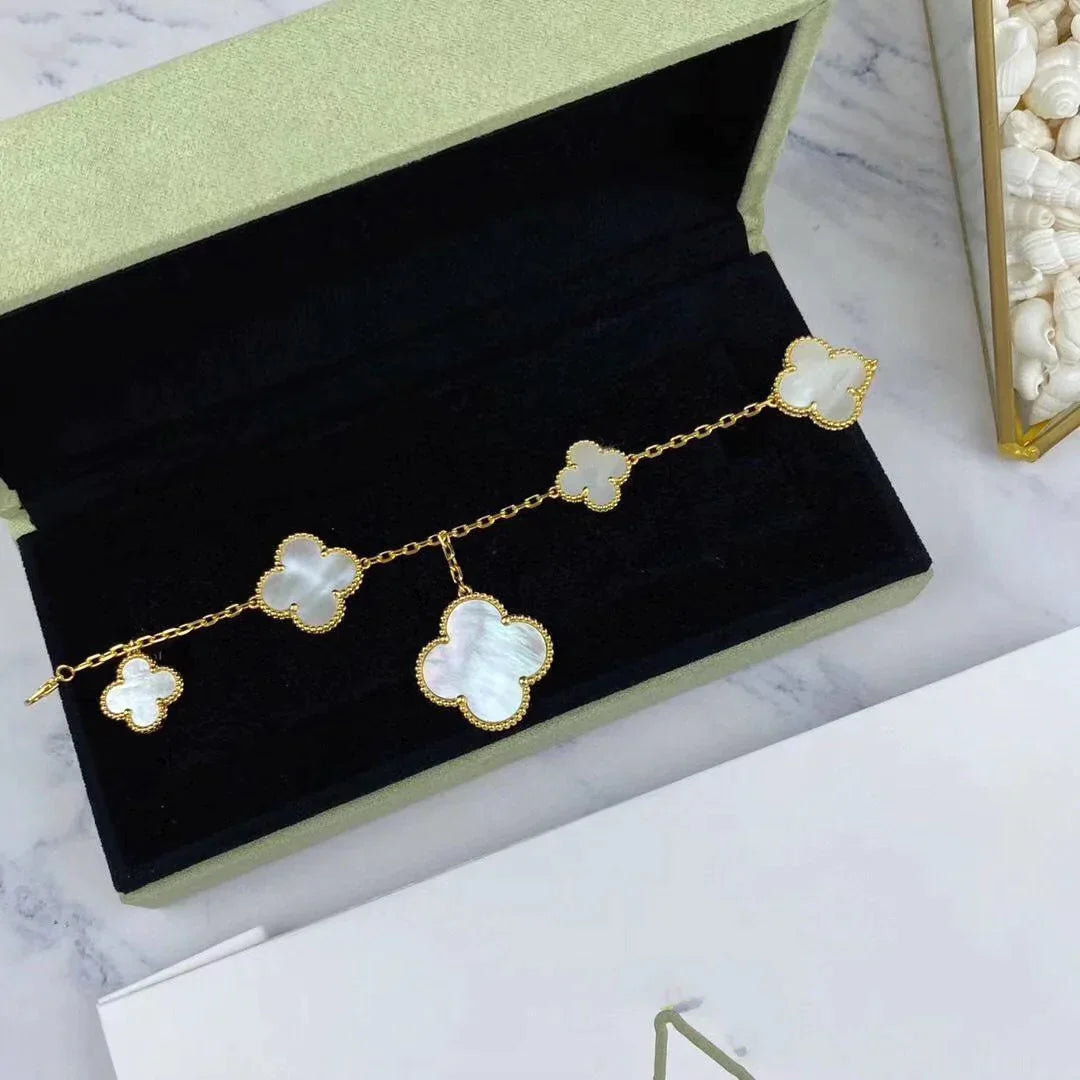 Clover Bracelet Rose Gold Plated 5 MOP Motifs High Quality