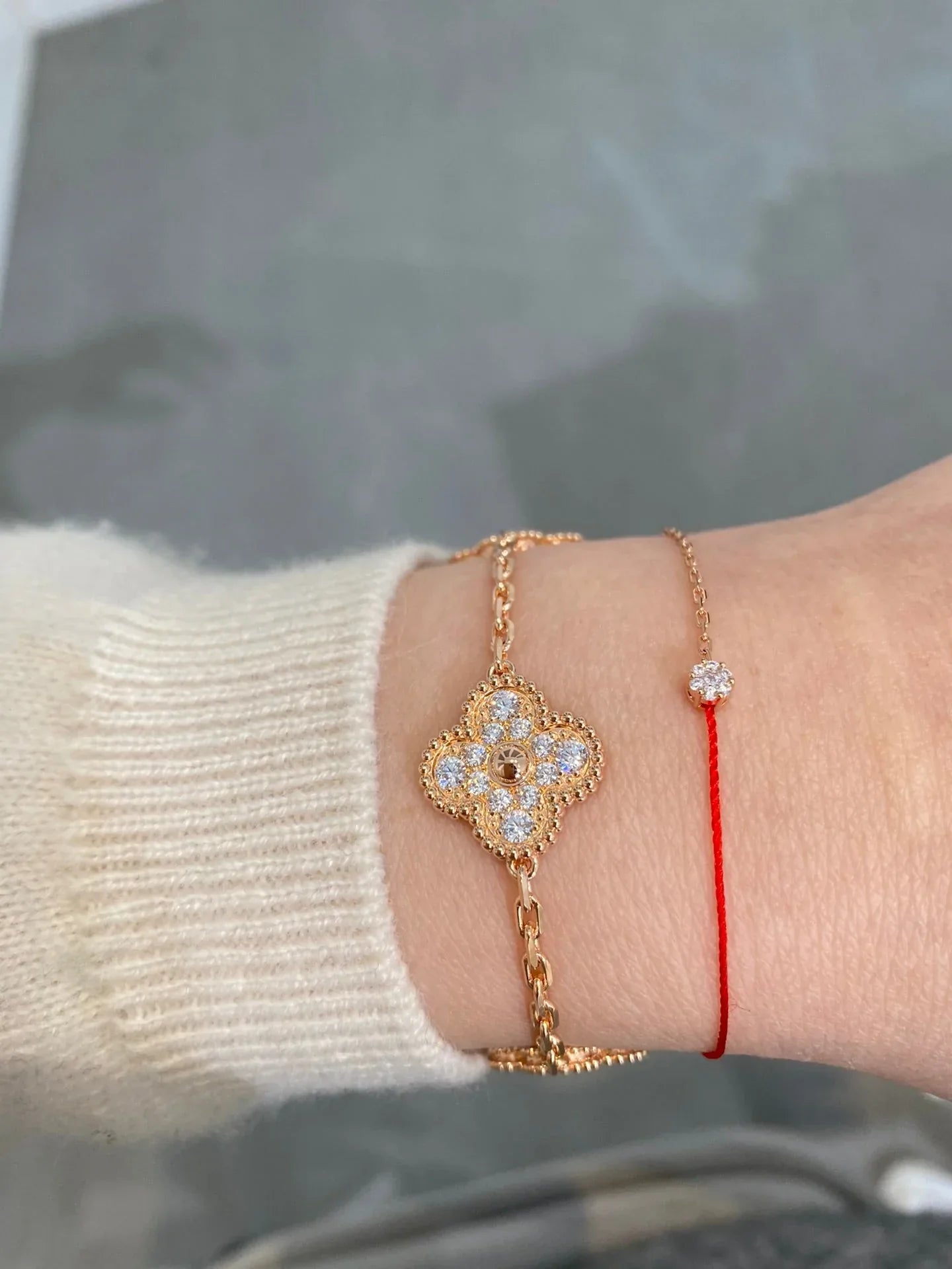 Clover Bracelet Rose Gold Plated 5 Motifs with Diamonds High Quality