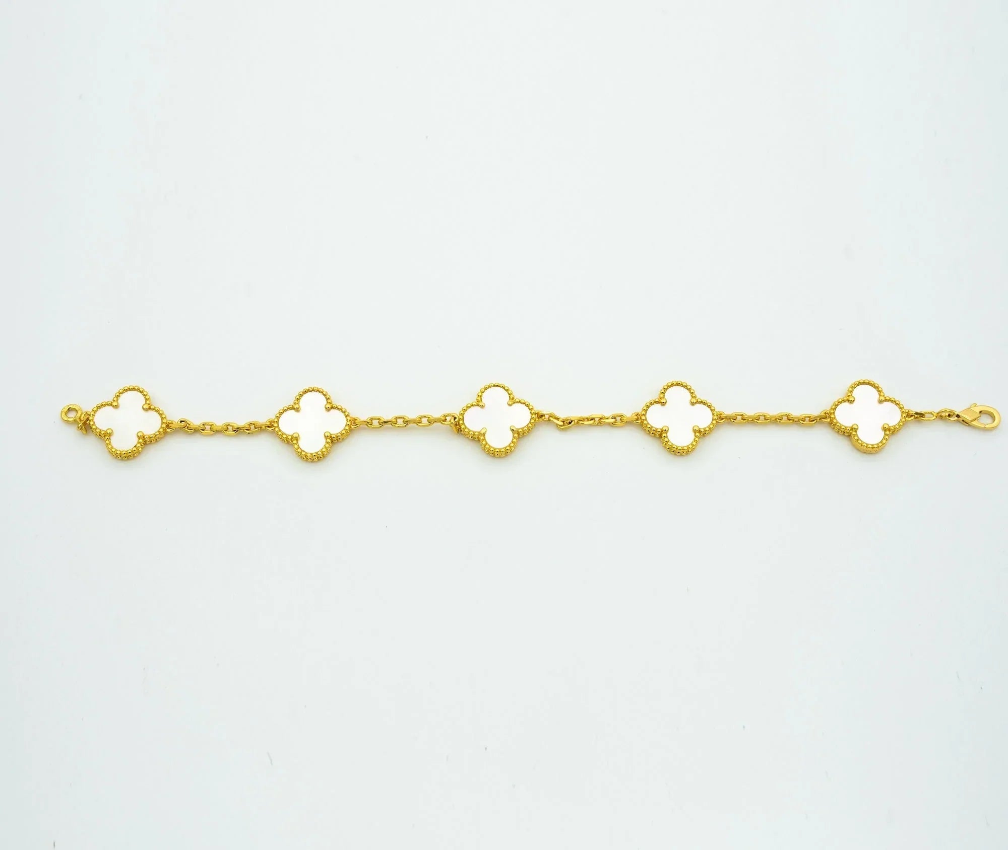 Clover Bracelet Yellow Gold Plated 5 White MOP Motifs High Quality