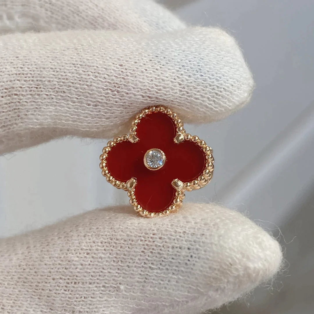 Clover Earrings Carnelian Pink Gold Diamond Elegant High Quality