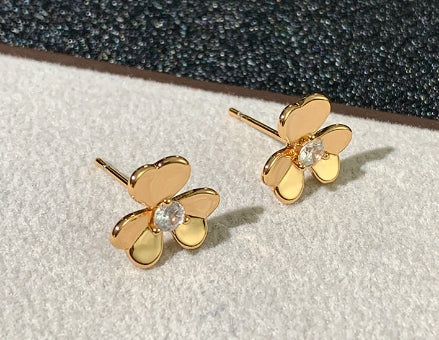 Clover Earrings Gold Flower Diamond Center Stud High Quality