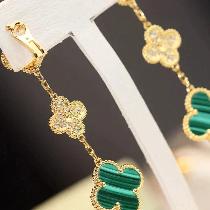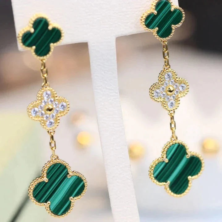 Clover Earrings Gold Malachite Diamond 3 Motifs Drop High Quality