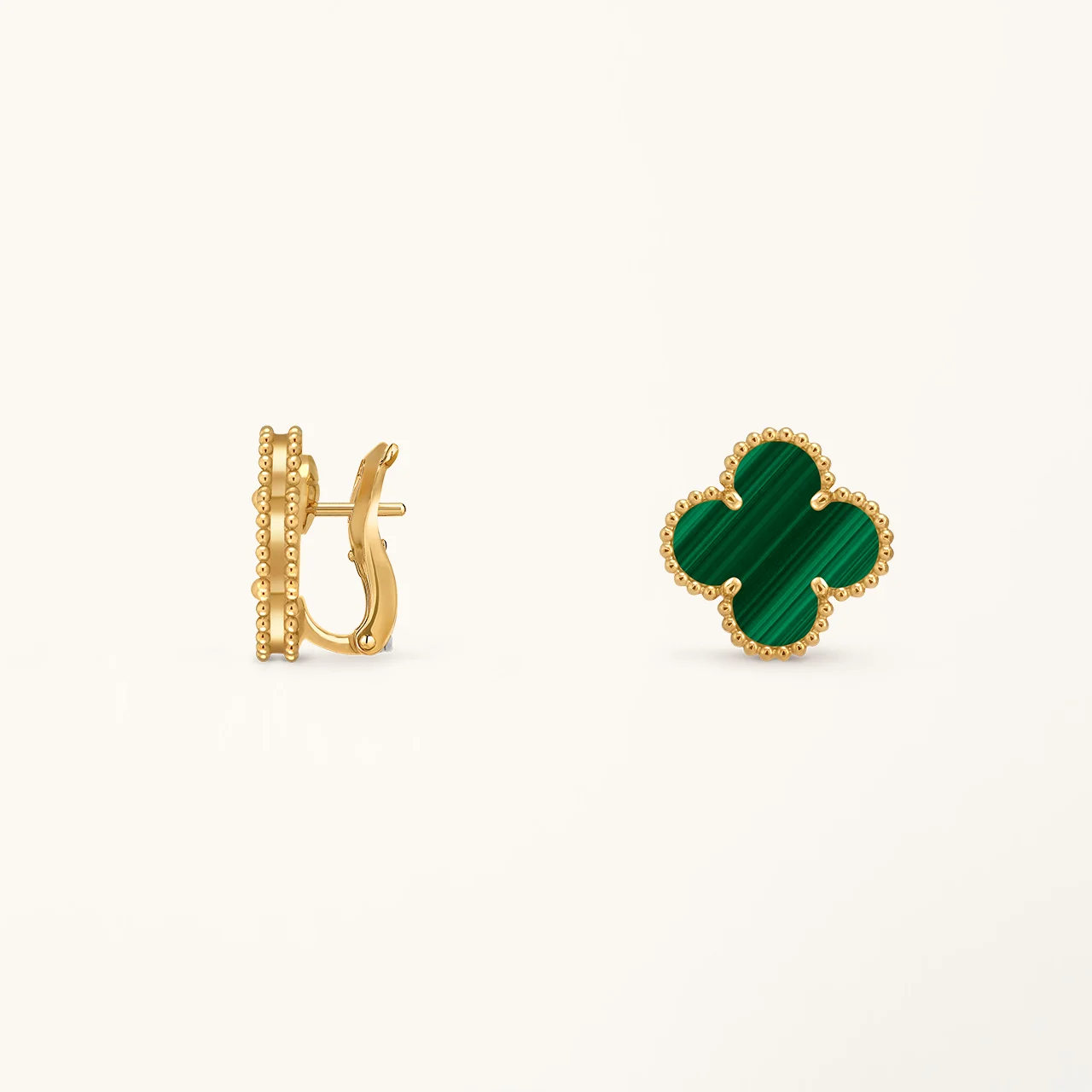 - Medium-sized clover earrings with malachite stone inlay