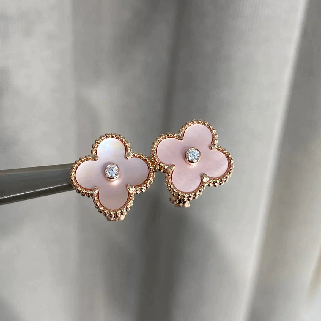 Clover Earrings Sweet Pink MOP Gold Diamond High Quality