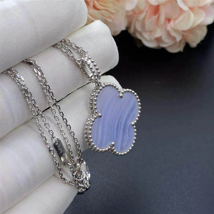 Clover Necklace Silver Chalcedony Big Clover Pendant High Quality