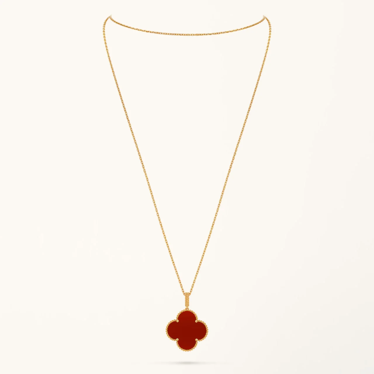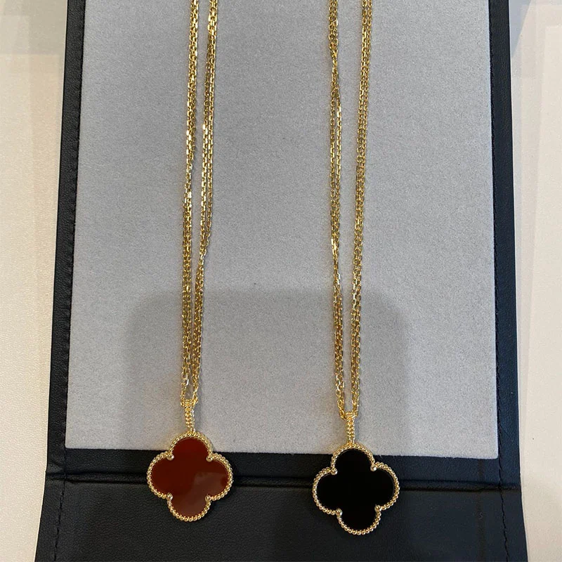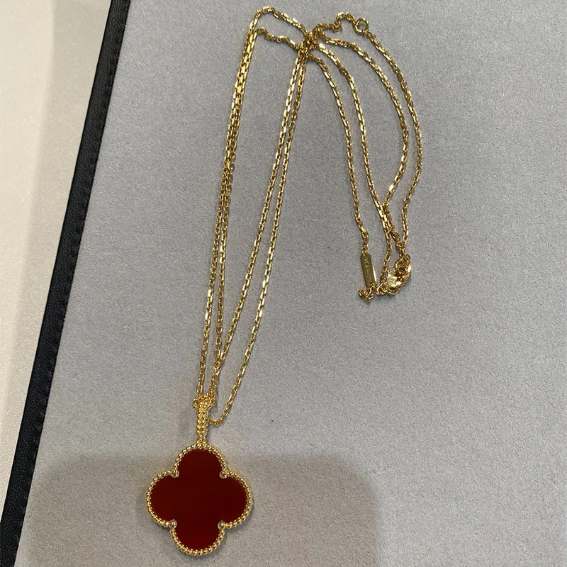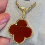 Clover Necklace Yellow Gold Plated Carnelian Clover Motif High Quality
