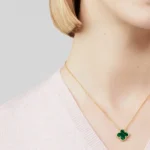 - Four-leaf clover pendant with malachite stone inlay