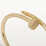 - A daring reinterpretation of everyday strength, the Elegant Gold Nail-Inspired Bangle fuses raw industrial edge with refined luxury. This classic model coils gracefully around the wrist like a golden whisper of rebellion — a sculptural silhouette reminiscent of a curved nail, elevated by the brilliance of pavé-set diamonds.