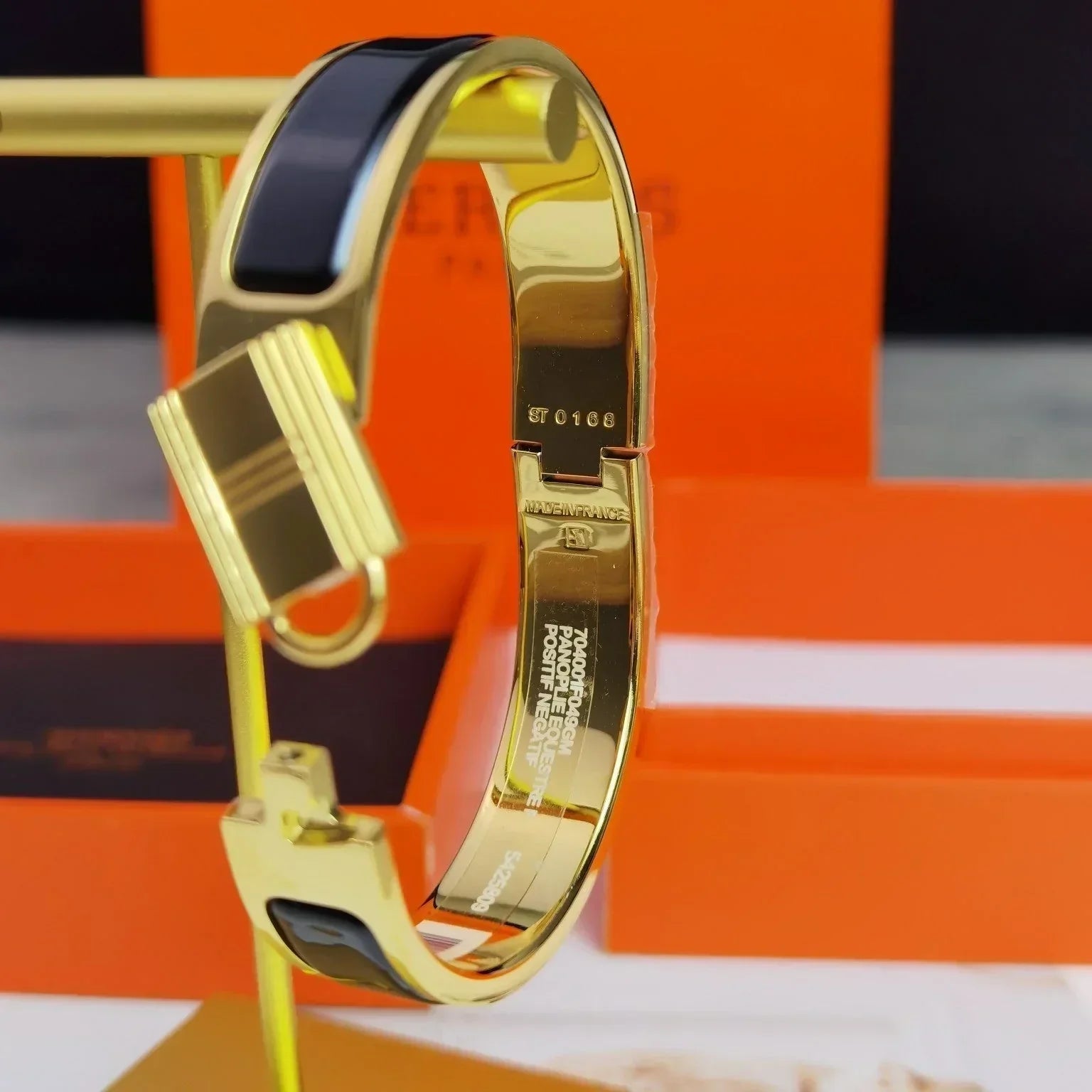 H Lock Bracelet Gold Black Enamel 12mm High Quality