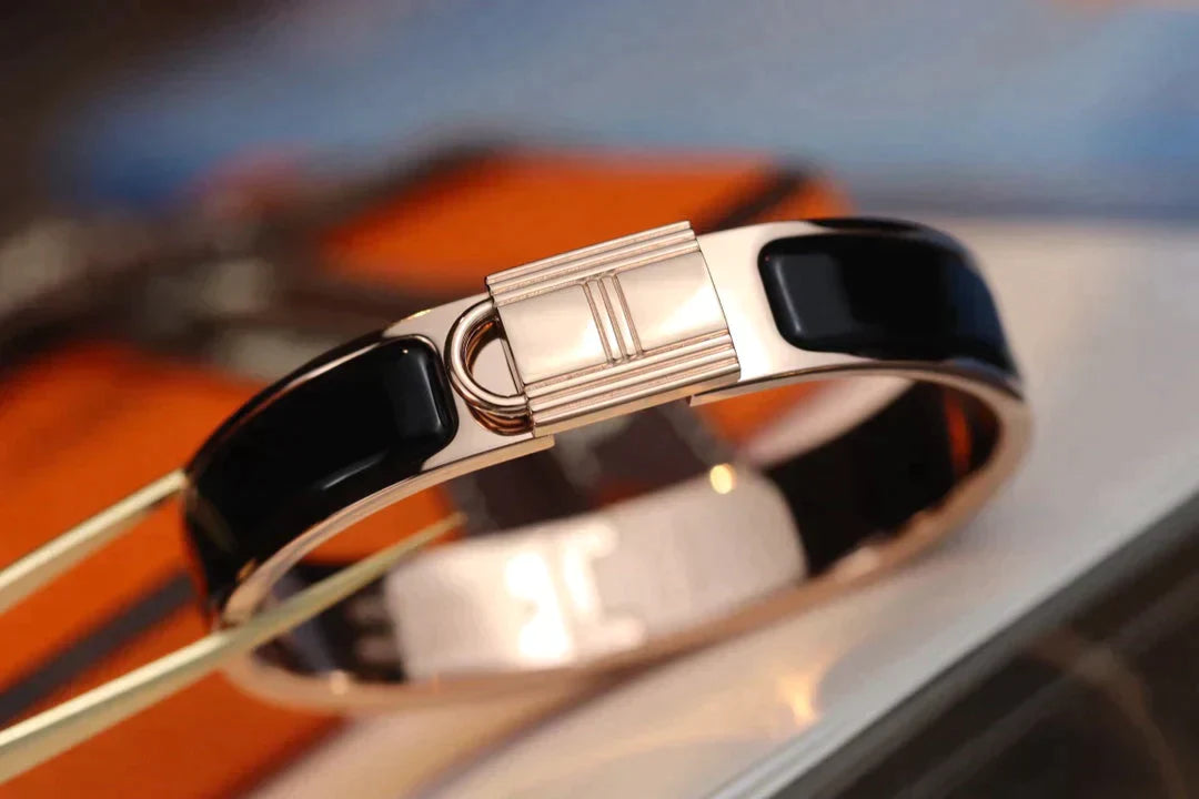 H Lock Bracelet Pink Gold Black Enamel 12mm High Quality