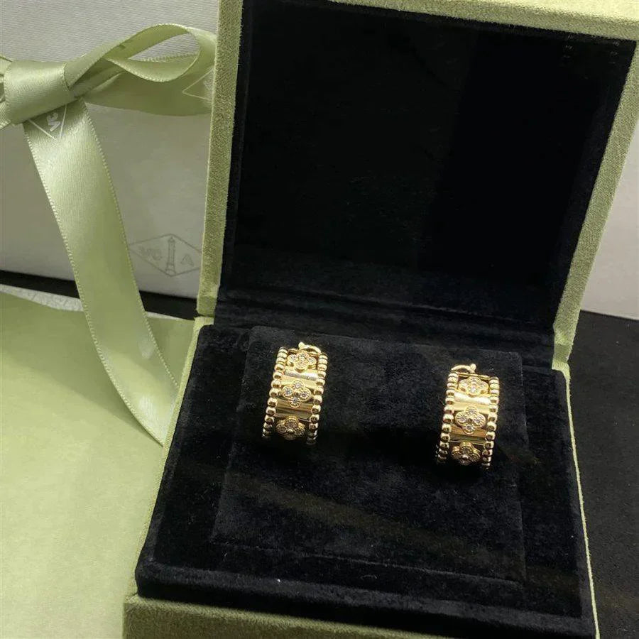 Perlee Earrings Diamond Clover Hoop Earrings High Quality