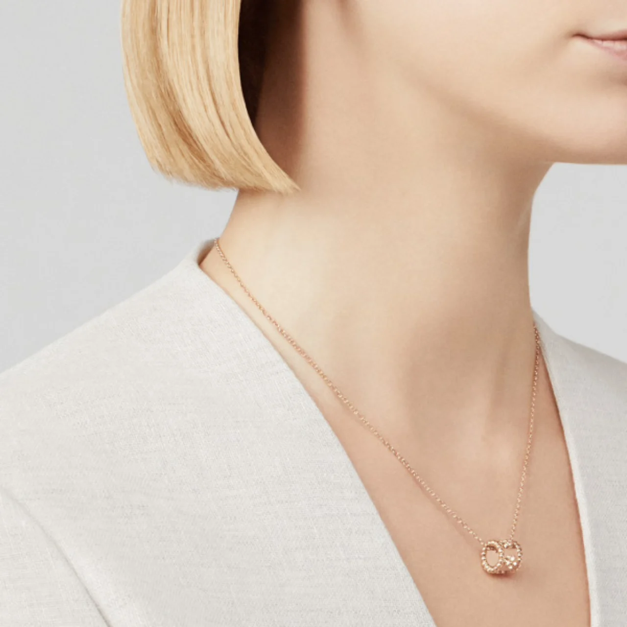 The necklace can be worn alone for a minimal appearance or layered with other delicate chains to create a refined layered look.