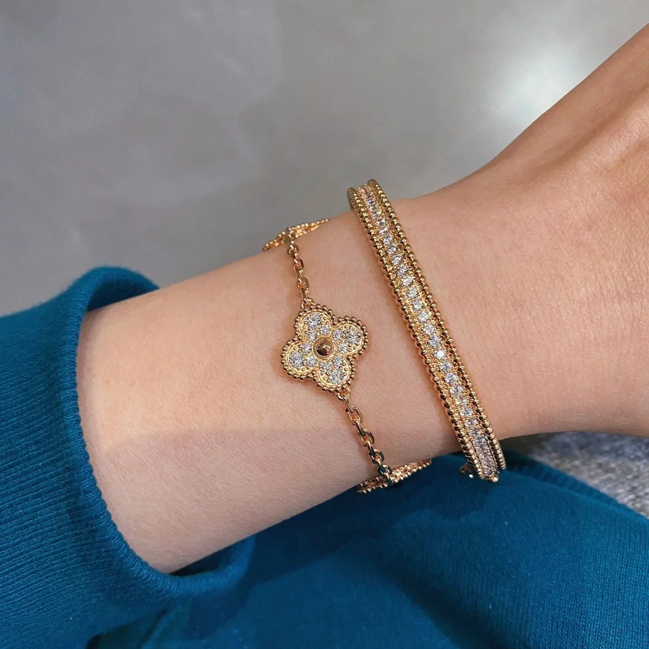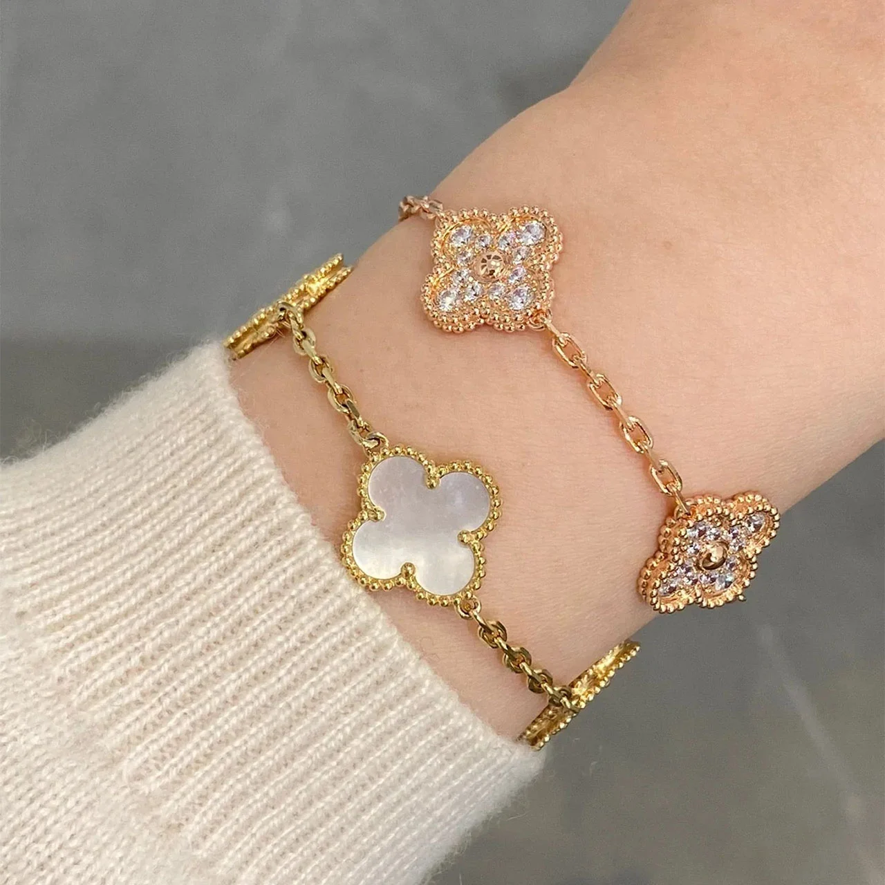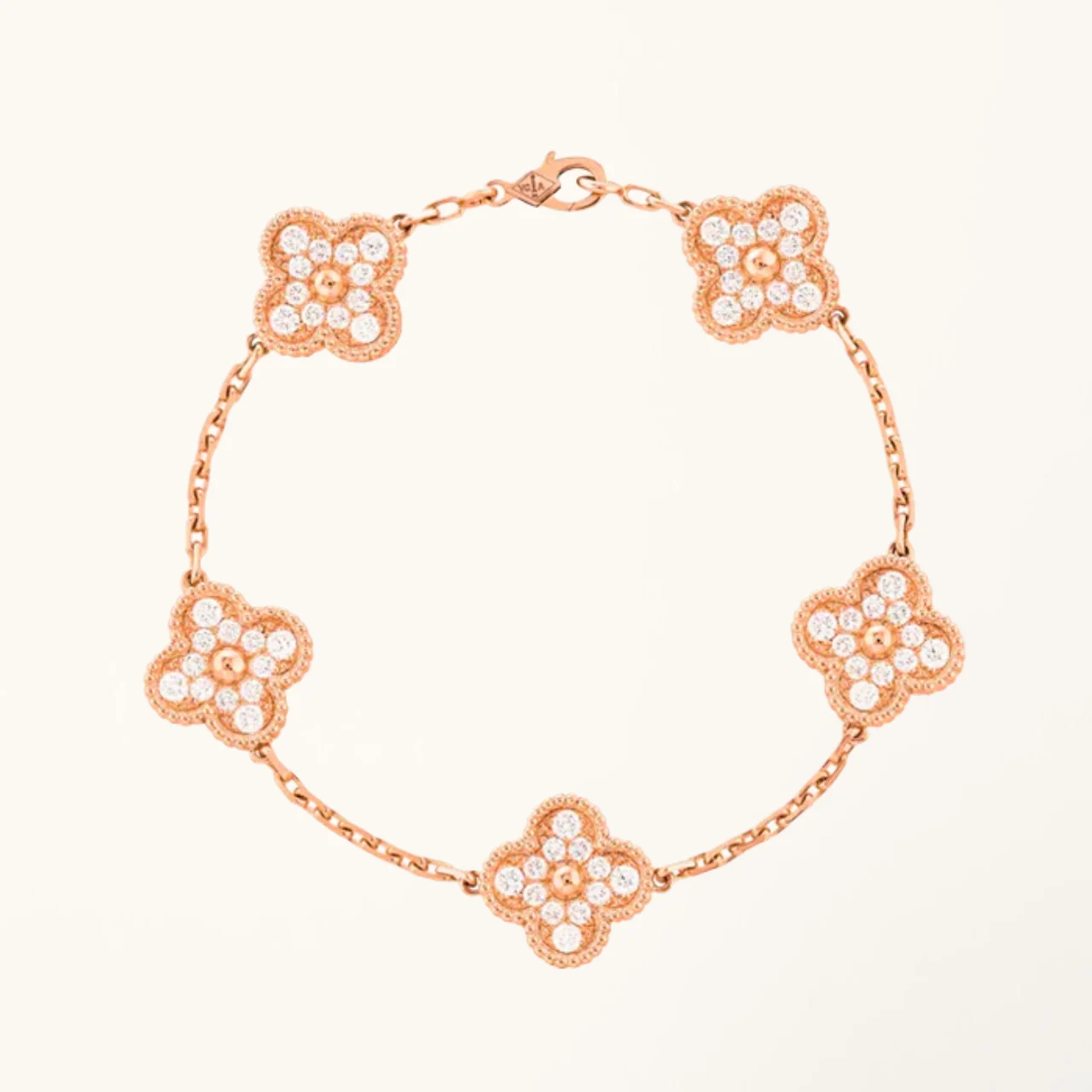 Rose Gold Clover Bracelet for Women Cubic Zirconia 5 Motif Gift Jewelry