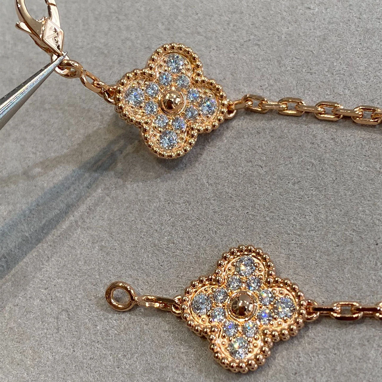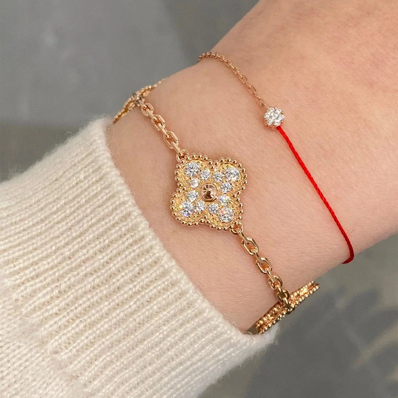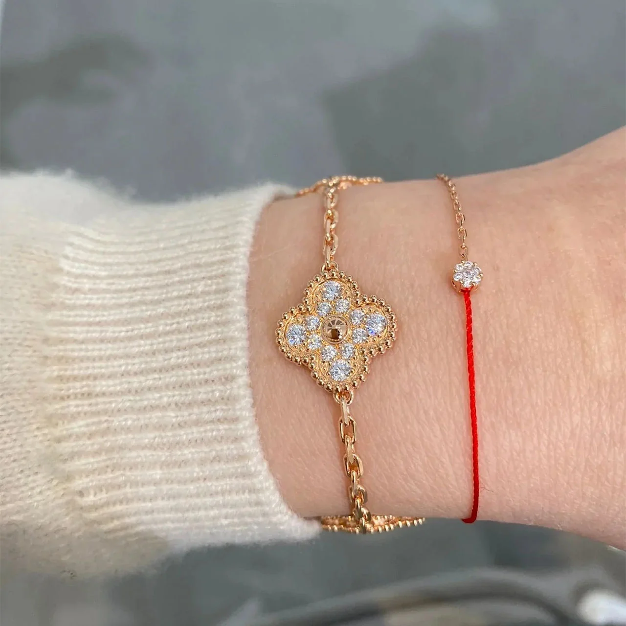 Rose Gold Clover Bracelet for Women Cubic Zirconia 5 Motif Gift Jewelry