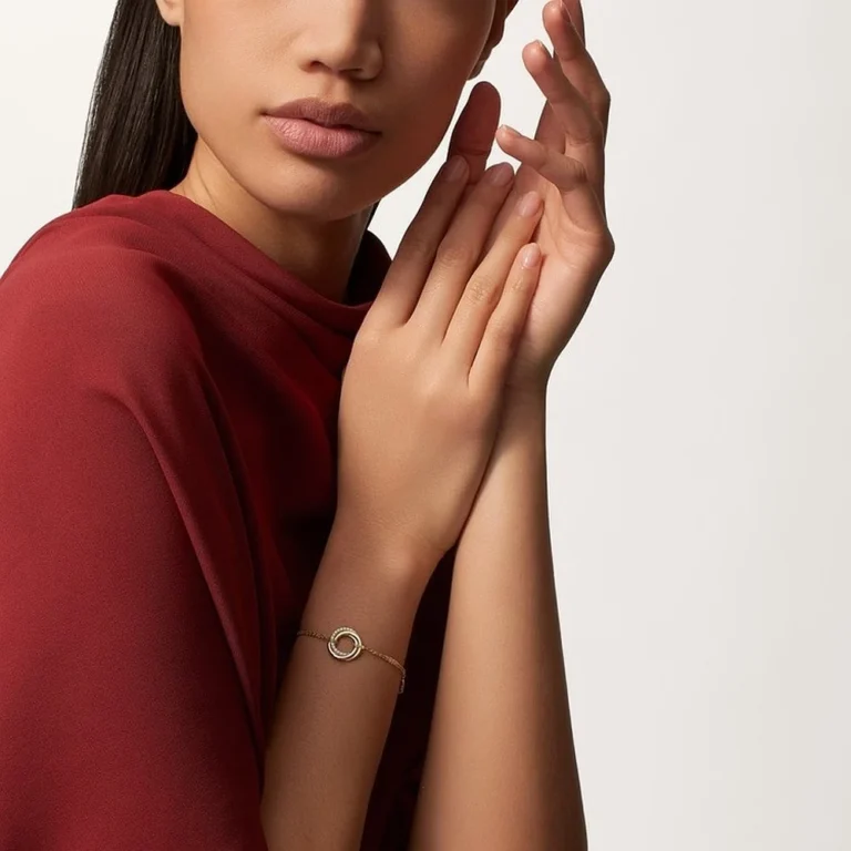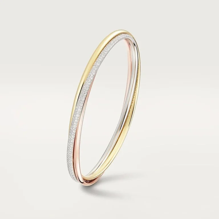 Pink Yellow And White Gold Tone Triple Tone Bracelet With Sparkling Stone Best Gift Ideas For Couple